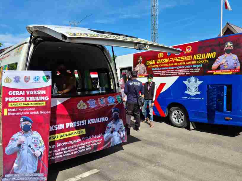 Sebanyak 130 Gerai Vaksin Presisi dibuka Polda Kalsel sebagai langkah untuk mendukung program Pemerintah dalam upaya penanganan Covid-19 melalui percepatan vaksinasi massal. Dengan protokol kesehatan yang ketat yakni penggunaan masker medis dan menjaga jarak serta mencuci tangan dengan air sabun pada air mengalir ,masyarakat sambut antusias dan benar benar menerapkan disiplin prokes.”Gerai vaksin ini untuk memfasilitasi masyarakat yang belum disuntik vaksin Covid-19. Gerai dibuka setiap hari kerja dan gratis,” kata Kapolda Kalsel Irjen Pol Drs. Rikwanto, S.H., M.Hum. melalui Kabid Dokkes Polda Kalsel Kombes Pol dr. Ubaidillah dalam keterangannya, Senin (19/7/2021).