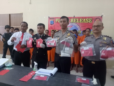 Para tersangka yakni, Ahmad Maulana dan Ahmad Husairi 9 paket narkotika jenis sabu berat kotor 2,24 gram (berat bersih 0,62 gram), M Rusli 1 paket sabu berat bersih 0,06 gram, Ahmad Rizal 2 paket sabu berar kotor 0,55 gram dan berat bersih 0,17 gram, Juanda 1 paket sabu berar kotor 0,40 (berat bersih 0,35 gram), Adan dan Ilmi 2 paket sabu berar kotor 0,48 gram (berat bersih 0,16).