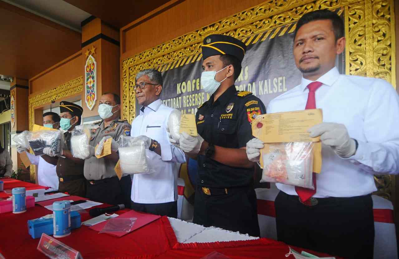 Direktur Dit Res Narkoba Polda Kalsel Kombes Pol Iwan Eka Putra didampingi Kabid Humas Kombes Pol M Rifai serta Wadir Narkoba AKBP Budi Hermanto menyampaikan, target operasi tercapai 100 persen.
