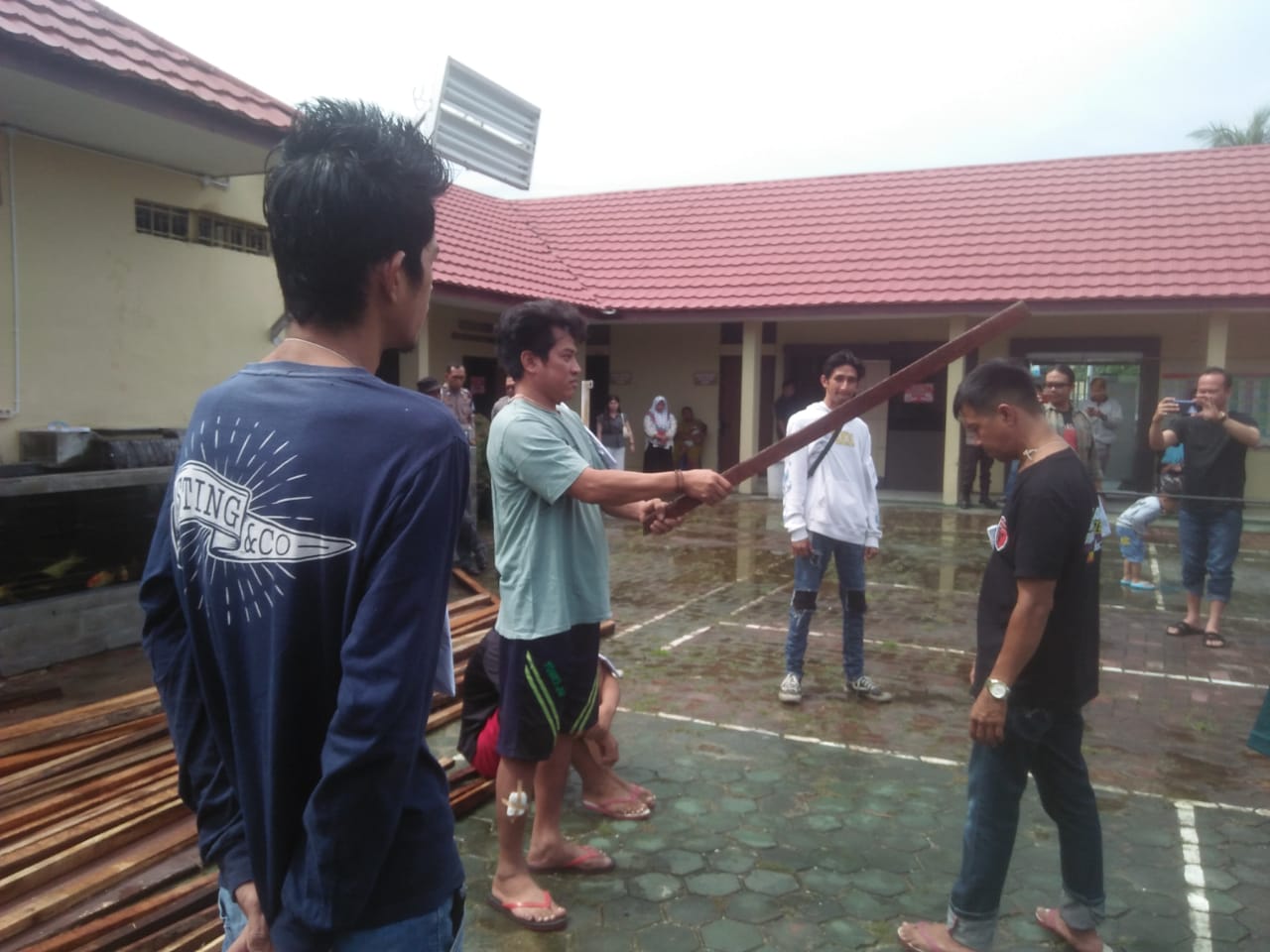 Pengeroyokan yang terjadi di depan warung jagung bakar itu digelar di halaman Mapolsek setempat juga didampingi orang tua korban Supriyanto (63) dan Unit P3A Pemko Banjarmasin. “Saya minta pelaku dihukum seberat-beratnya karena sudah mrnghilangkan nyawa anak saya, “sebut Supriyanto.