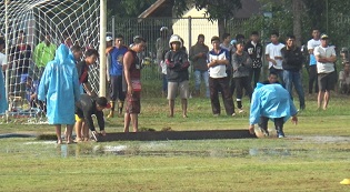 Untuk mengurangi genangan air pun, harus menggunakan papan sepanjang 3 meter oleh beberapa orang guna menghalau genangan air tersebut sebelum pertandingan persahabatan di mulai. Namun upaya tersebut juga belum maksimal, karena genangan air pun masih ada. baz