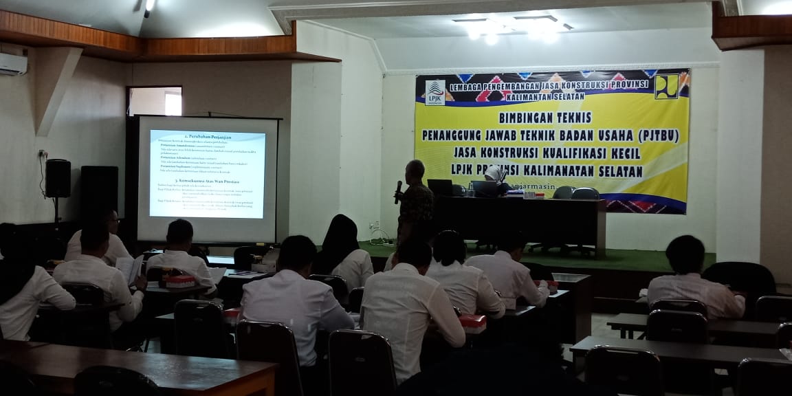Banjarmasin, BARITO – Manager Eksekutif Lembaga Pengembangan Jasa Konstruksi (LPJK) Provinsi Kalsel H Syahdi Rasyid mengungkapkan, kegiatan Pelatihan Penanggung Jawab Teknik Badan Usaha (PJTBU) Jasa Konstruksi Kualifikasi Kecil LPJK Provinsi Kalsel merupakan yang ke-8, dengan peserta antar kabupaten/kota.