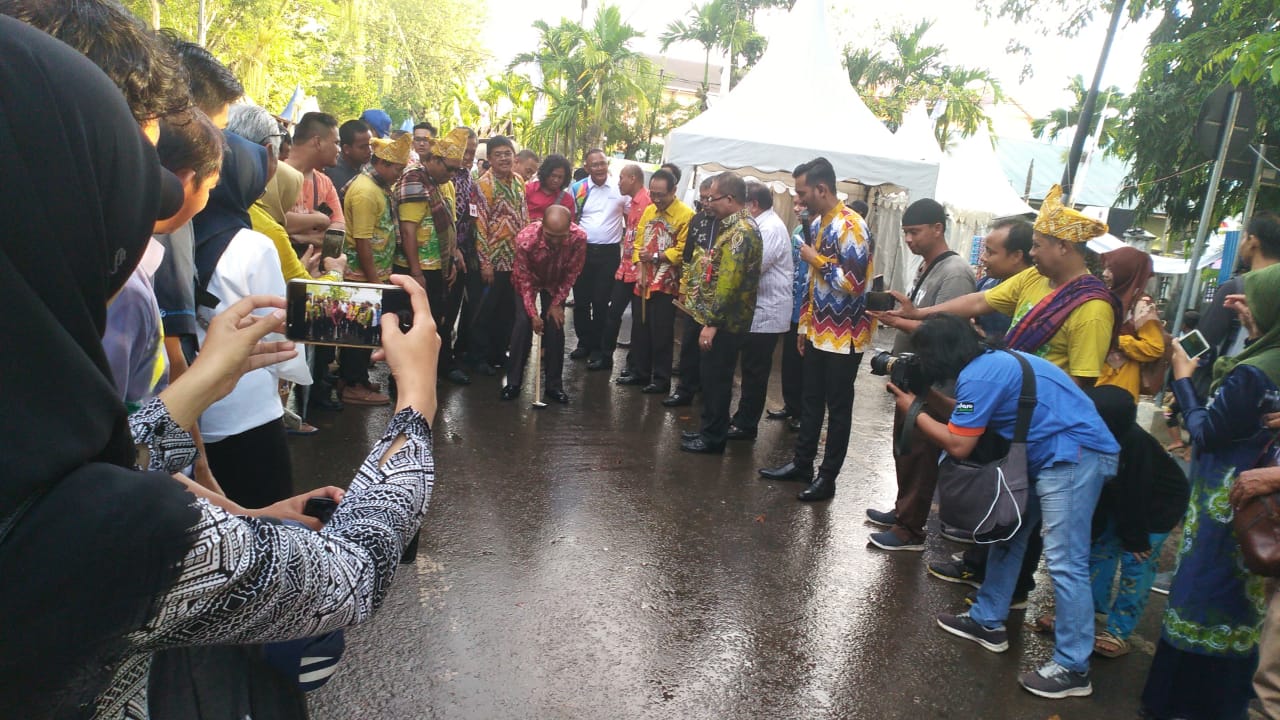 Meski sempat diguyur hujan, acara yang dihadiri pimpinan daerah di Kalsel dan disaksikan warga masyarakat setempat itu tetap berjalan lancar dan kondusif.