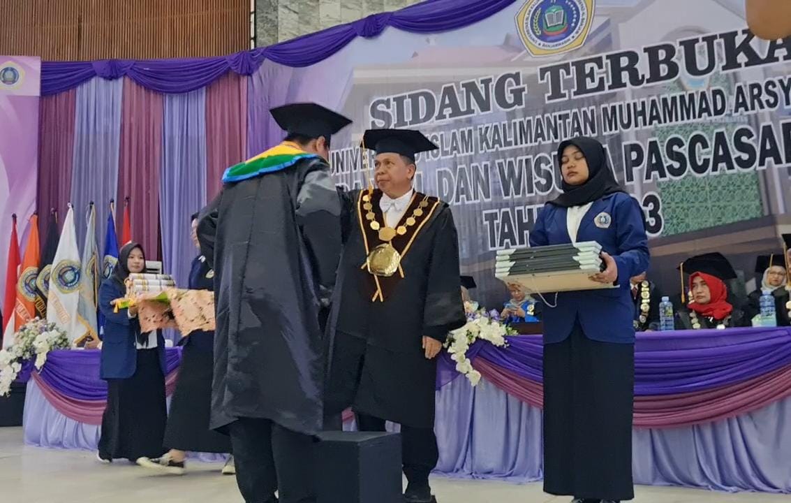 Wisuda kampus terbesar di Kalimantan ini dilaksanakan selama dua hari. Ada yang mencuri perhatian, saat prosesi wisuda ada empat orang wisuda yang meninggal dunia. Sehingga prosesi wisuda diwakilkan oleh orang tua dan yang mewakili.