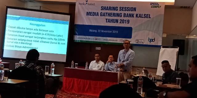 Malang, BARITO – Hadi Rahman Kepala Kelompok Sekretaris Perusahaan (KSP) Bank Kalsel menjadi moderator dalam sharing session, di Media Gathering, di Hotel Atria Malang, Jumat (22/11/2019).