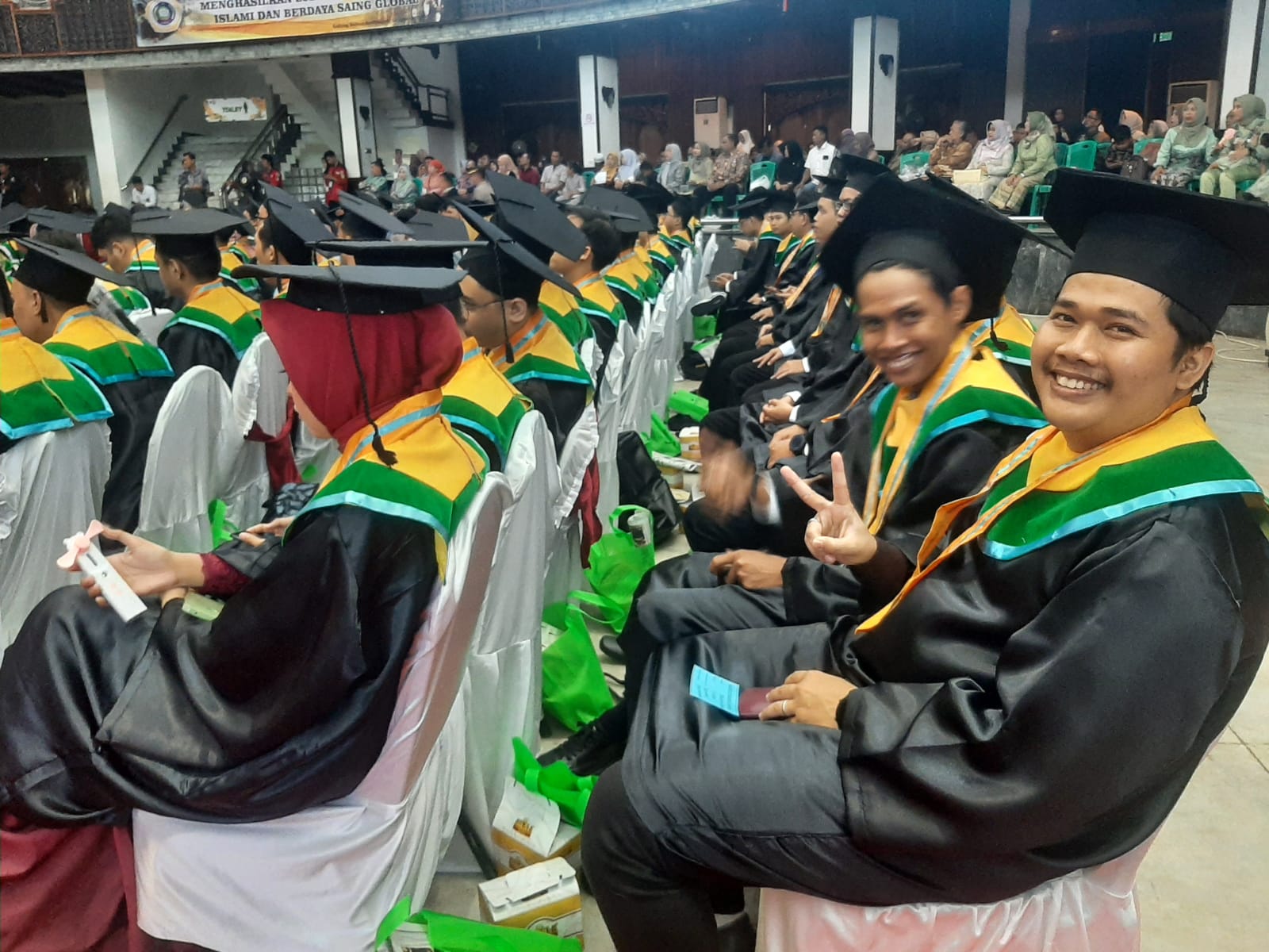 Sumringah wisudawan Uniska yang menunggu giliran pengukuhan.
