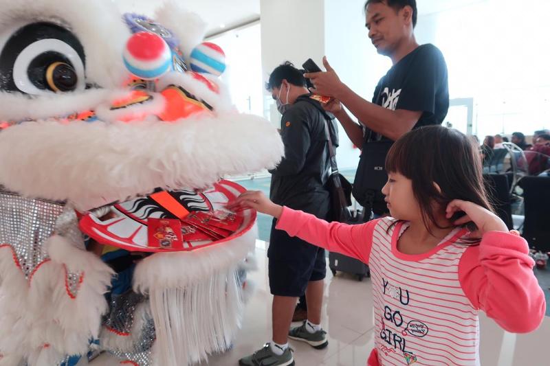 Kemeriahan suasana Tahun Baru Imlek dilengkapi dengan pohon harapan yang dapat ditulis oleh para penumpang. Tidak ketinggalan bagi-bagi angpau dan jeruk oleh barongsai dan Duta Bandara untuk seluruh penumpang baik yang akan berangkat maupun sampai di Bandar Udara Internasional Syamsudin Noor.