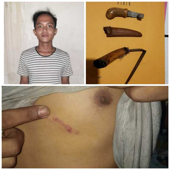 “Korban yang sempat terjatuh saat memegang sajamnya sendiri. Sementara luka tusuk yang dilakukan oleh korban ke badan pelaku tidak membuat korban mengalami luka serius.