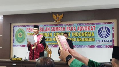 Sementara Ketua DPC PERADI Banjarmasin Edi Sucipto SH didampingi Sekretaris DPC PERADI Banjarmasin Ali Murtado SH mengatakan bahwa kegiatan pengambilan sumpah itu sendiri adalah proses akhir untuk dapat beracara sebagai advokat.