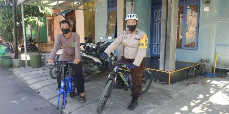 Sembari bersepeda Aipda Abdul Aziz, S,H. semakin gencar lakukan giat sambang kamtibmas sekaligus mengedukasi terkait protokol kesehatan cegah Covid-10 kepada warga binaannya.