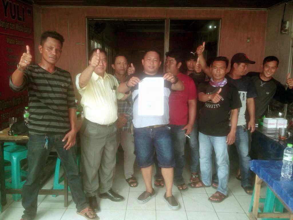 SAMLAN Cs dan para mandor buruh memperlihatkan bukti yang akan dilampirkan pada upaya hukum banding nantinya (foto mercy)