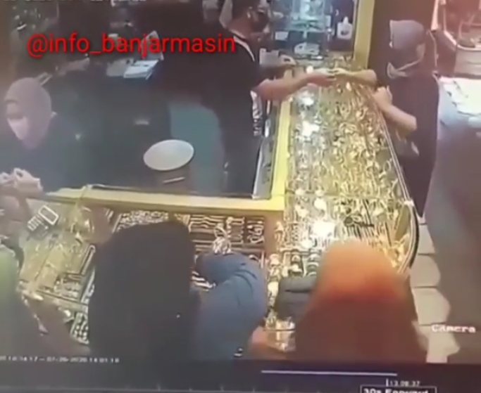 Banjarmasin, BARITO – Sebuah video terkait dugaan komplotan pencuri emas di sebuah toko emas Pasar Sentra Antasari beredar di media sosial akun Instagram @info_banjarmasin.