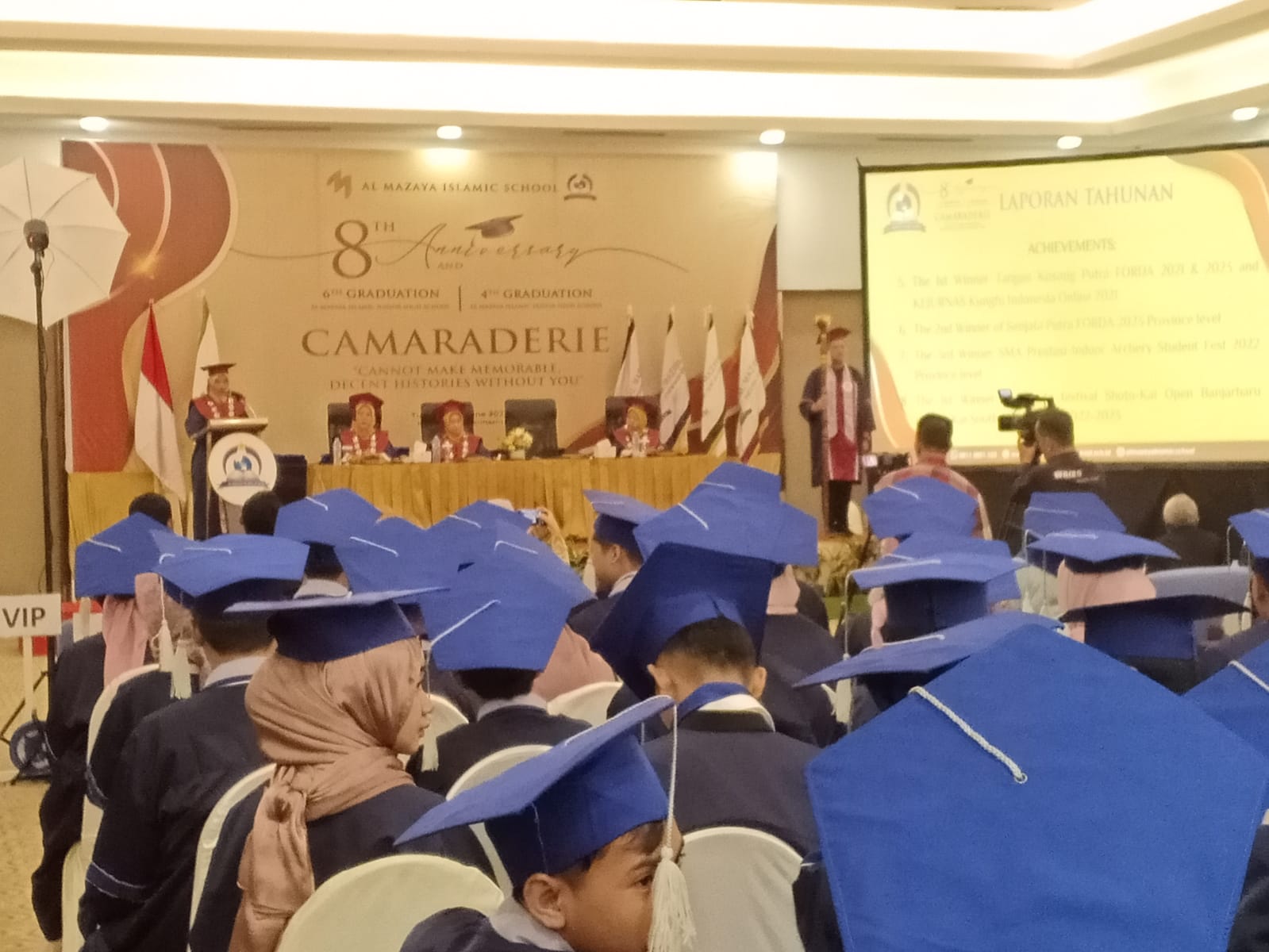Banjarmasin, BARITOPOST.CO.ID – Al Mazaya Islamic School 8th Anniversary and 6th Graduation (Al Mazaya Islamic Junior High School) and 4th Graduation (Al Mazaya Islamic Senior High School) betajuk CAMARADERIE “Cannot Make Memorable Decent Historis Without You” digelar di Hotel Rattan In Banjarmasin, Selasa (6/6/2023).