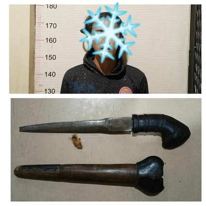 Pihak polisi juga berhasil menemukan satu bilah sajam jenis belati panjang 25 Cm yang digunakan pelaku saat memganiaya.