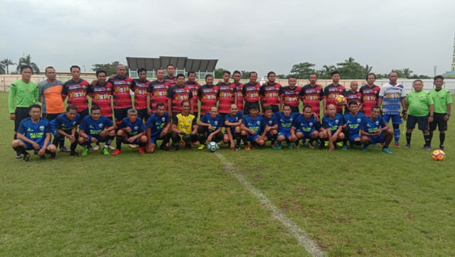 Banjarmasin, BARITO – Dua kesebelasan, All Star Kalsel dan All Star Tanah Laut (Tala) melakukan pertandingan persahabatan. Dimotori Bupati Tala, H Sukamta, memberikan perlawanan sengit yang berakhir 2-1 untuk tuan rumah, Senin (29/4) di Stadion 17 Mei Banjarmasin.