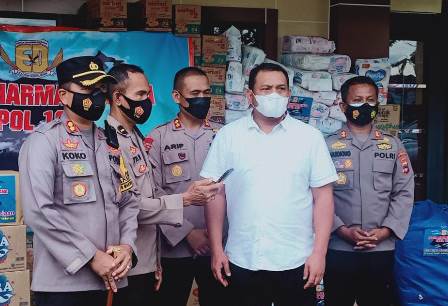 Menurut Sapta, masing-masing Polres HST dan Polres Banjar mendapat bantuan beras 3 ton, mie instan 150 dus, susu anak 30 dus, gula 4 karung, air mineral 150 dus dll.