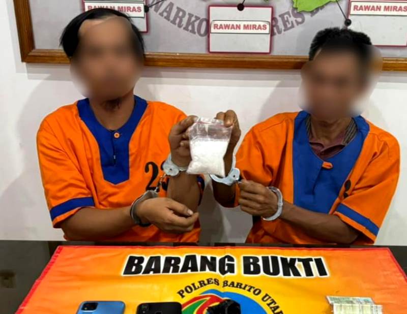 Kapolres Barito Utara AKBP Gede Eka Yudharma melalui Kasi Humas AKP Sugiya mengatakan, kedua tersangka ditangkap di depan sebuah warung di Kandui, setelah polisi mendapatkan informasi A-1 bahwa keduanya membawa barang haram berupa sabu.
