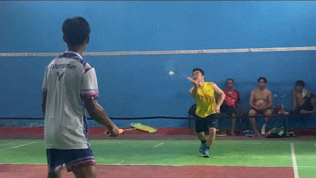 Tidak ada seremoni, tidak ada agenda resmi. Suasananya hangat dan akrab. Warga bermain secara bergiliran, dan Fathurrahman ikut turun ke lapangan dengan raket di tangan. Ia tampak menikmati permainan, tertawa lepas, dan larut dalam kebersamaan.
