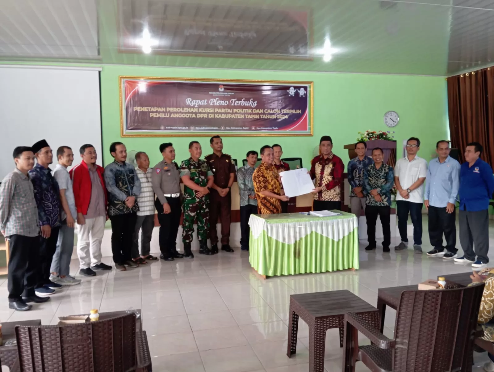 Rantau, BARITOPOST.CO.ID – Rapat Pleno KPU Kabupaten Tapin menetapkan perolehan kursi Partai Politik (Parpol) dan Caleg terpilih sebagai anggota DPRD Tapin, periode 2024-2029 di Aula Ponpes Siti Khadijah, Kota Rantau.