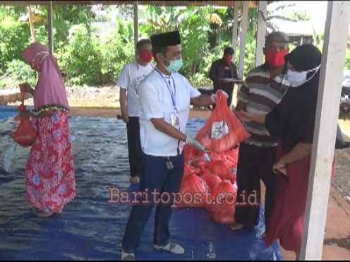 Setiap desa diberikan 50 paket sembako, dan tetap menjaga protokol kesehatan Physical Distancing, tidak semua warga penerima diminta datang namun hanya beberapa orang perwakilan, selanjutnya sembako-sembako diserahkan kepada kepala desa masing-masing untuk menyalurkan kepada warganya.
