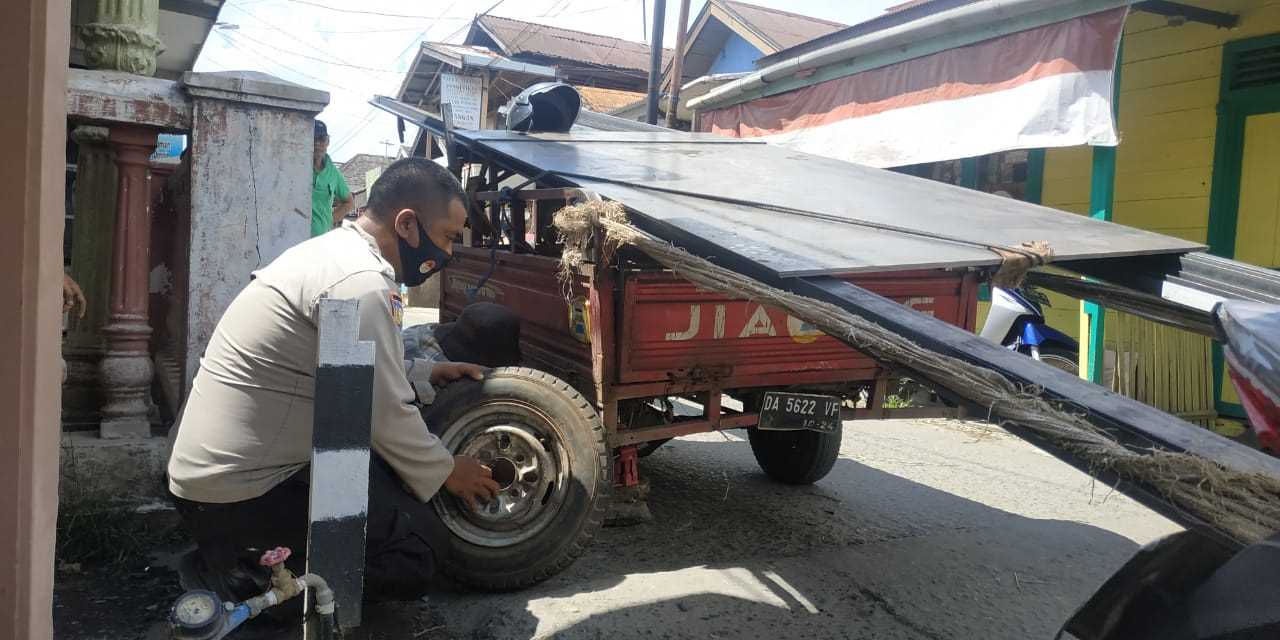 Seperti yang dilakukannya saat membantu mengganti ban warga yang mengalami kebocoran ban di Jalan Kelayan B Kecamatan Banjarmasin Selatan Kota Banjarmasin. Rabu (22/07/2020)