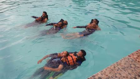 Bertempat di kolam renang Gelanggang Olah Raga (GOR) Hasanudin HM pelatihan dipimpin langsung Instruktur Kasat setempat AKP John Letedara. Satu persatu anggota dilatih guna bagaimana menolong korban musibah baik di sungai maupun di perairan laut.