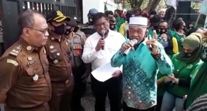 Banjarmasin, BARITO –  RATUSAN  massa LSM Pemuda Islam Kalsel dan Komite Anti Korupsi (KAKI) kembali mendatangi Kantor Kejaksaan Tinggi (Kejati) Kalsel, Selasa (18/8/2020) .