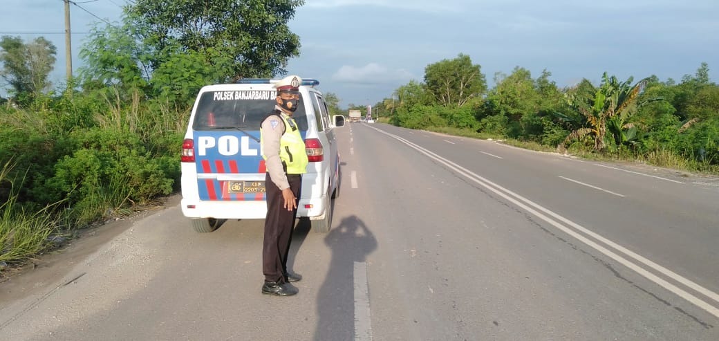 Polsek Banjarbaru Barat merupakan jajaran Polres Banjarbaru. piket fungsi lantas tingkatkan patroli sore. Petugas antisipasi balapan liar di jalan lingkar utara arah bandara Syamsudin Noor Kelurahan Landasan Ulin Barat Kecamatan Liang Anggang Kota Banjarbaru, Sabtu (31/10/2020).