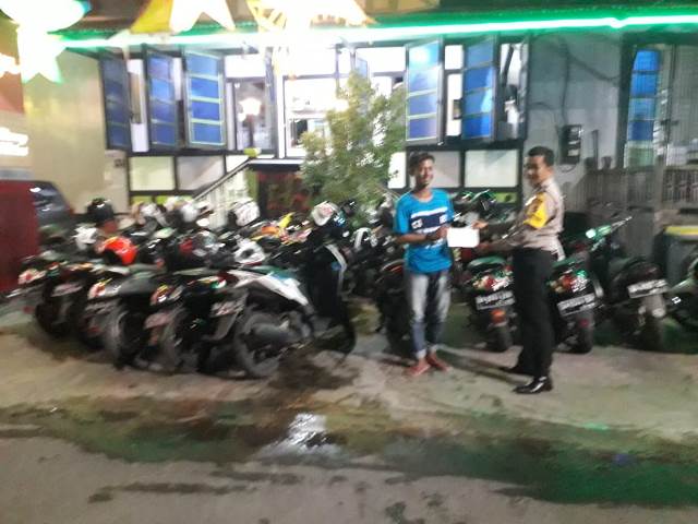 Sebanyak 11 Bhabinkamtimas (BKTM) di wilayah hukum Polsek Banjarmasin Tengah (Banteng) mendatangi warga yang lalai parkir motornya, Jum’at (12/7/2019) malam. BKTM itu mengingatkan pada jam – jam rawan pergantian malam sekitar pukul 19.00-21.00 Wita, dengan melaksanakan giat patroli sambang untuk antisipasi pencurian kendaraan bermotor (curanmor).