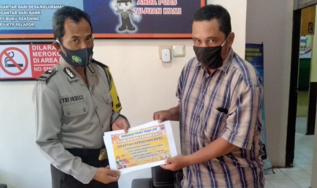 “Kunjungan kami laksanakan untuk menjaga situasi kamtibmas dan memberi sosialisasi adaptasi kebiasaan baru kepada masyarakat,” tutur Kapolsek
