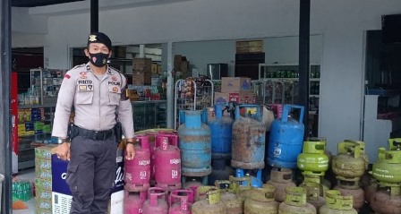 Kanit Sabhara Polsek Karang Bintang Polda Kalsel Aipda Rinto pantau dan awasi jalannya pendistribusian Gas LPG ditengah wabah virus corona (Covid-19). Hal itu dilakukan karena diduga tingginya permintaan masyarakat akan gas LPG sehingga membuat personil Polsek Karang Bintang memantau dan mengawasi penjualan pendistribusian LPG untuk menjaga dan menciptakan keamanan dan ketertiban pada saat pendistribusian, Rabu (30/09/2020).