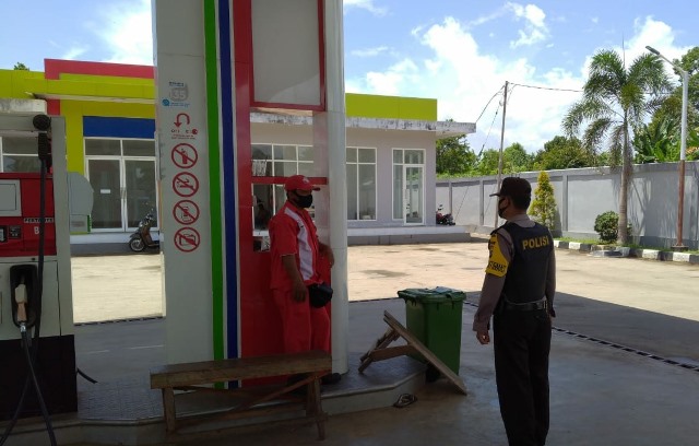Tampak Bripka. Imam. S melaksanakan pengecekan situasi sekitar SPBU untuk mengantisipasi adanya tindak kejahatan serta adanya pengerusakan sarana SPBU yang berada di wilkum Polsek Tambang Ulang Polres Tanah Laut Polda Kalimantan Selatan.