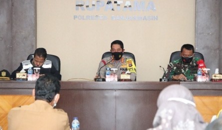 Pada pelaksanaan itu dibahas terkait perkembangan serta penanganan Covid-19, yang mana dalam sambutannya Kapolresta Banjarmasin menyampaikan bahwa tim gabungan sudah melaksanakan sosialisasi, edukasi, pendisiplinan serta penegakan Perwali No.68 di Kota Seribu Sungai selama satu bulan dan saat ini hanya tersisa satu zona merah yaitu di Kelurahan Seberang Masjid.