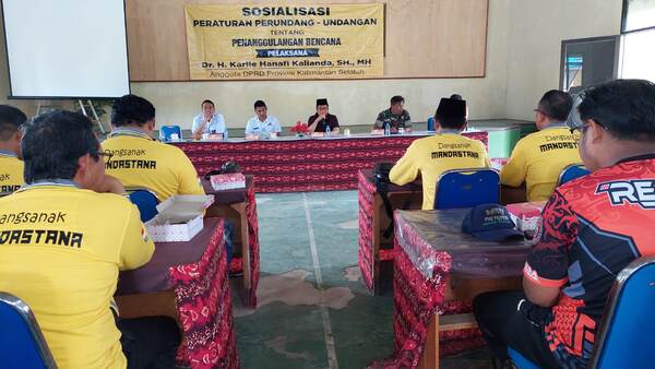 Mandastana, BARITOPOST.CO.ID –Untuk mengantisipasi resiko musibah banjir di Kalimantan Selatan (Kalsel), anggota DPRD Provinsi Kalsel, Dr H Karlie Hanafi Kalianda, SH, MH melaksanakan kegiatan Sosialisasi Peraturan Daerah (Perda) Kalsel Nomor 6 Tahun 2017 tentang Penanggulangan Bencana Di Provinsi Kalsel.