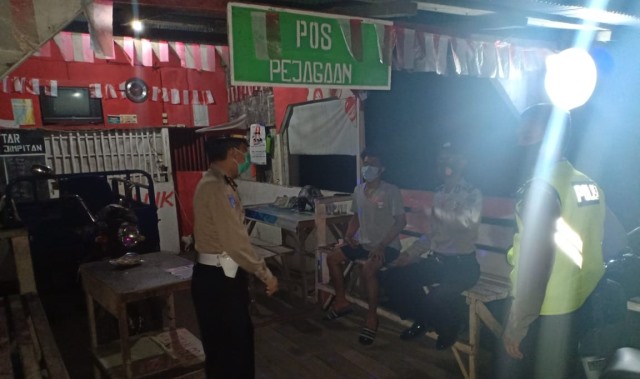 Personel Polsek Banjarbaru Barat merupakan jajaran Polres Banjarbaru, melaksanakan patroli malam guna antisipasi tindak pidana kejahatan dan sampaikan protokol kesehatan Petugas keamanan Pos Kamling Jl. Sukamara Rt 01/01 Kelurahan Landasan Ulin Utara Kecamatan Liang Anggang. Kamis (15/10/2020) sekitar pukul 22.30 Wita.