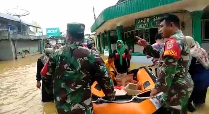 “Menggunakan perahu karet aparat gabungan mendistribusikan nasi bungkus.