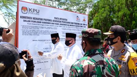 “Kami Penyelenggaraan Pemilu selalu menerapkan protokol kesehatan, begitu juga seluruh tim pasangan calon untuk selalu menerapkan protokol kesehatan didalam setiap kegiatan baik itu kampanye serta kegiatan lainnya yang mengundang massa,” tutur Ketua KPU Kalsel Sarmuji.