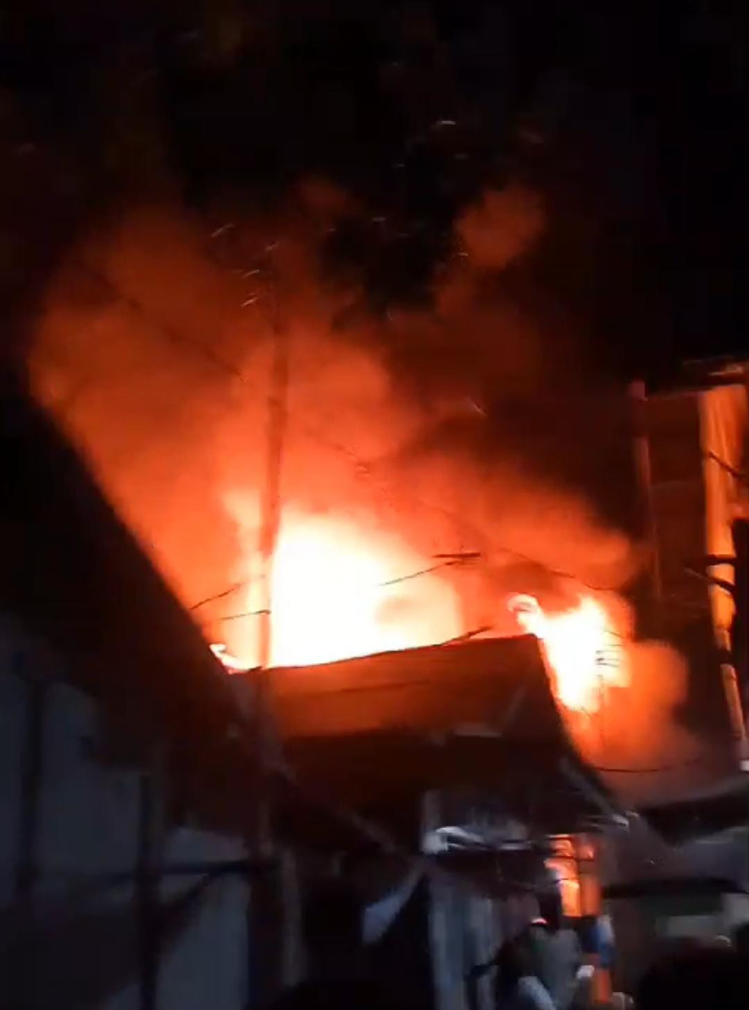 Selasa (23/4/2024) malam pukul 20.00 Wita. Titik api berkobar di permukiman padat penduduk Gang Kenari tembus Jalan Melayu.
