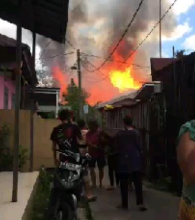 Rumah yang terbakar merupakan pemukiman padat penduduk di kawasan yang dikenal Kampung Arab tersebut. Sebanyak satu bangunan terbakar milik Hj Kartina Sukma Wati (69) yang dihuni tiga Kepala Keluarga (KK) atau.sembilan jiwa. Api segera dikepung oleh relawan Pemadam Kebakaran (Damkar) yang berdatangan silih berganti.
