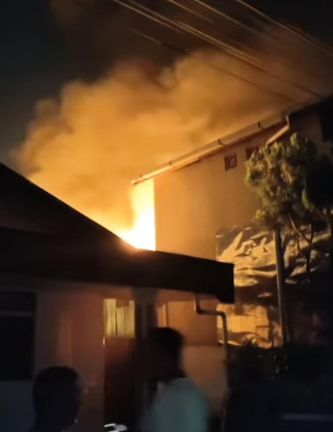 Api terlihat berkobar hebat melalap satu buah bangunan.