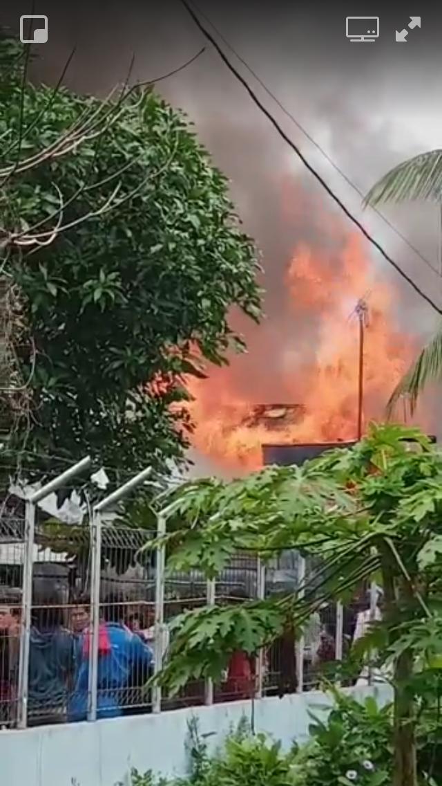 Kobaran si jago merah begitu besar terlihat nampak dari rumah warga di belakang Polsek Banjarmasin Barat.