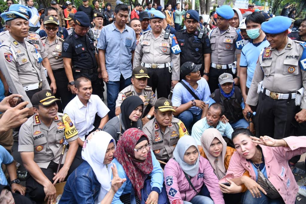 “Hidup polisi!” teriak orator menyambut kedatangan Kapolda Kalsel Irjen Pol . Yazid Fanani, di tengah-tengah massa..