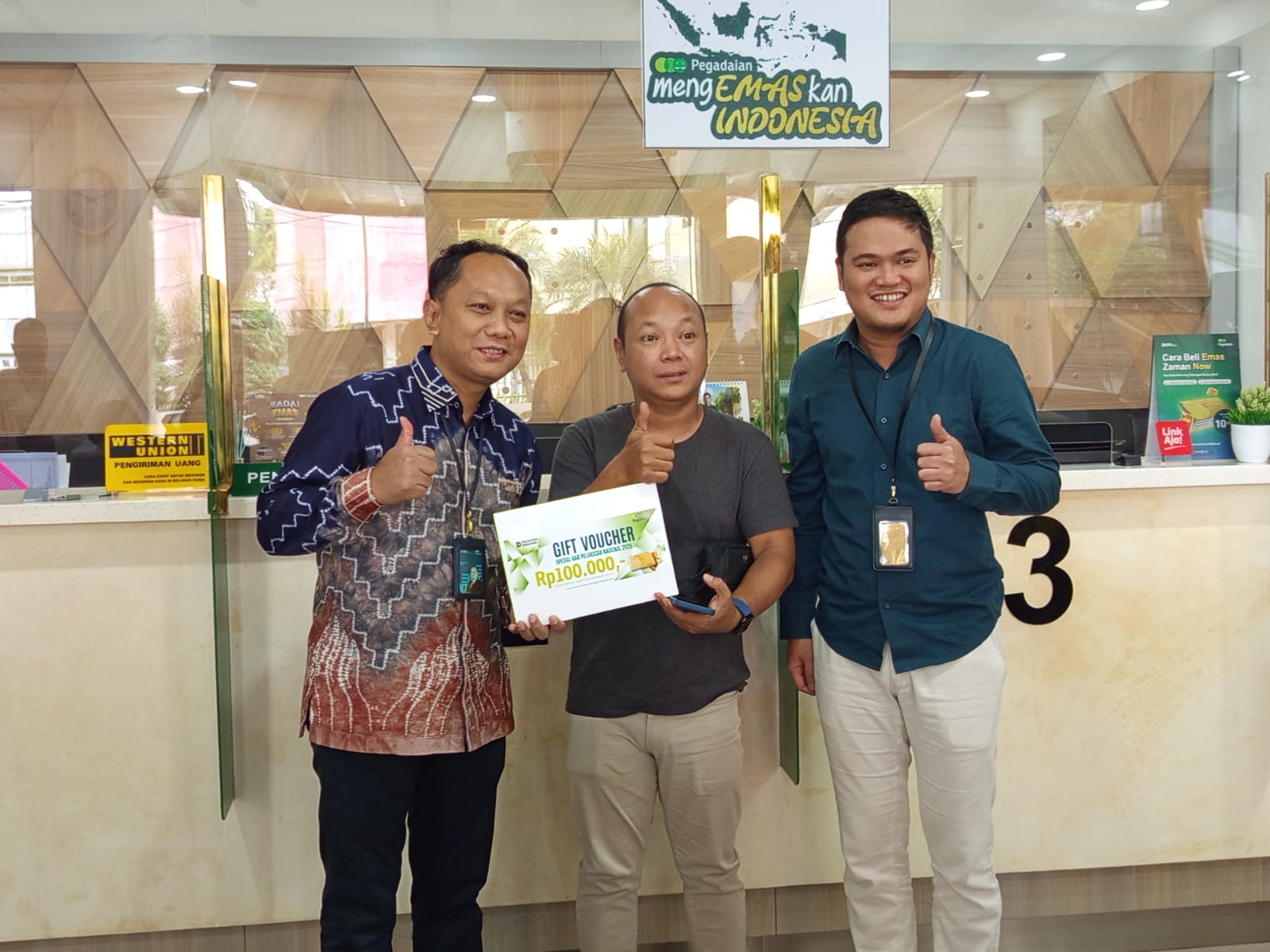 “Alhamdulillah, bahagia sekali bisa mendapat rezeki tambahan Rp100 ribu. Selama ini saya merasa nyaman, transaksi aman, dan pelayanan di Pegadaian sangat bagus,” ungkapnya.