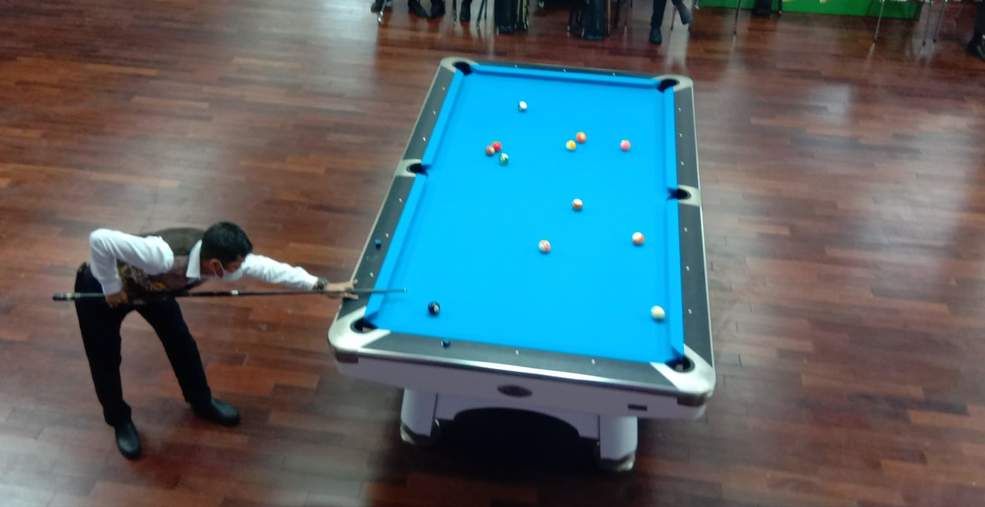 Mimika, BARITO – Pebiliar Kalsel, Arun/Noor Hidayatullah berhasil melewati babak 16 besar usai mengalahkan Rome FT/Punguan HS asal Sumatra Utara (Sumut) di nomor bola 8 double putra pada Pekan Olahrga Nasional (PON) XX, Minggu (3/10/2021) malam di GOR Biliar SP 5 Mimika, Papua.