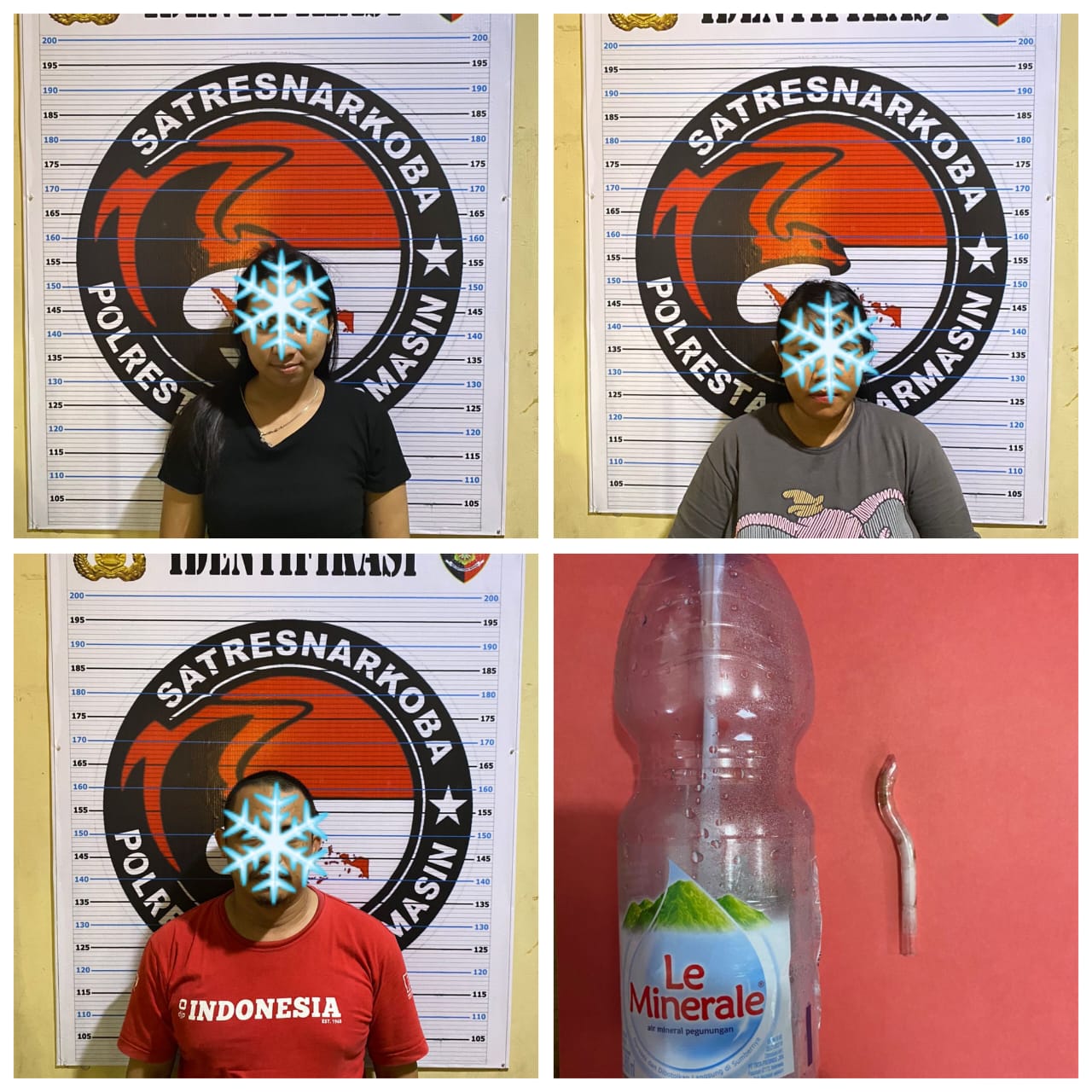 PESTA SABU - Dua wanita ibu rumah tangga dan Satun pria seorang sopir lepas digrebek saat pesta Sabu-sabu di Jalan Teluk Tiram Darat Banjarmasin, Rabu (8/5/2024) malam. (foto:ist)
