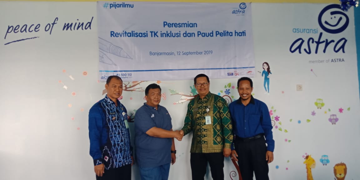Banjarmasin, BARITO – PT Asuransi Astra melakukan revitalisasi atas ruang belajar-mengajar PAUD Terpadu Inklusi Pelita Hati yang berlokasi di wilayah Baiman Gang Bersama Jalan AMD Banjarmasin Selatan, Kamis (12/9). Revitalisasi ini merupakan bagian dari program #PijarIlmu yang diinisiasi oleh Asuransi Astra.