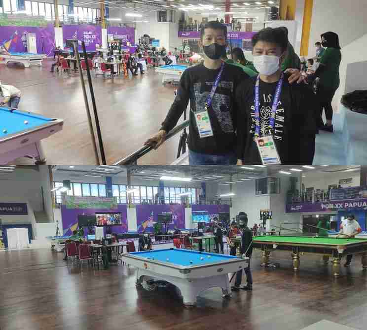 Mimika, BARITO – Seluruh atlet biliar Kalsel melakukan sesi latihan bersama. Sekaligus mengadaptasi arena pertandingan Pekan Olahraga Nasional (PON) XX, Jumat (1/10/2021) di GOR Biliar SP 5, Mimika, Papua.