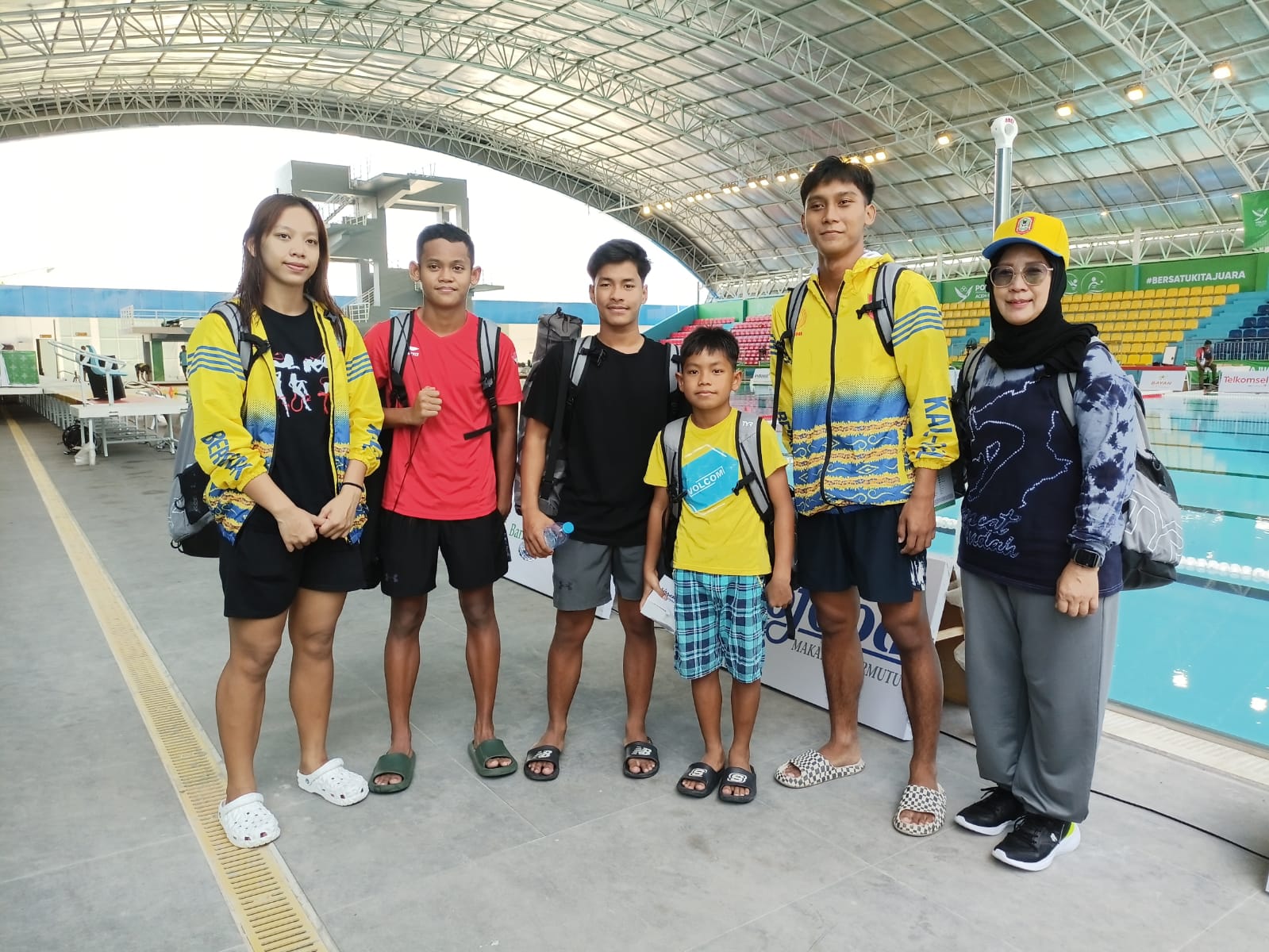 “Pagi ini atlet sudah mencoba venue. Dilanjutkan malam, sore dipakai pertandingan polo air,” sebut pelatih loncat indah Kalsel, Dwi Mariastuti.