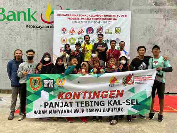 Banjarmasin, BARITO – Sebuah prestasi membanggakan ditorehkan atlet panjat tebing Kalsel di level nasional. Mengingat, berhasil membawa pulang sejumlah medali usai mengikuti Kejuaraan Nasional (Kejurnas) Kelompok Umur 2021 yang berakhir, Kamis (25/11/2021) di Nangroe Aceh Darussalam.