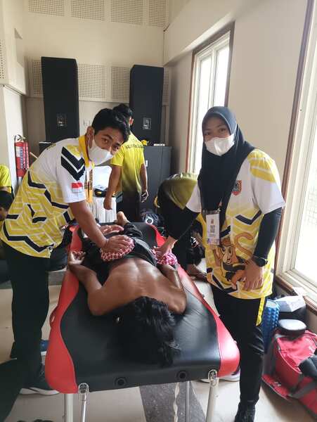 Biasanya, lanjutnya, sebelum bertanding atlet melakukan pemanasan latihan mandiri. “Terkadang kita juga melakukan pemanasan menggunakan Foarm Roller, Resistand Band. Jika ada permasalahan dibagian otot dan sendi atlet akan diberikan proteksi dengan Kinesiology Tape kepada atlet yang membutuhkan,” terangnya.
